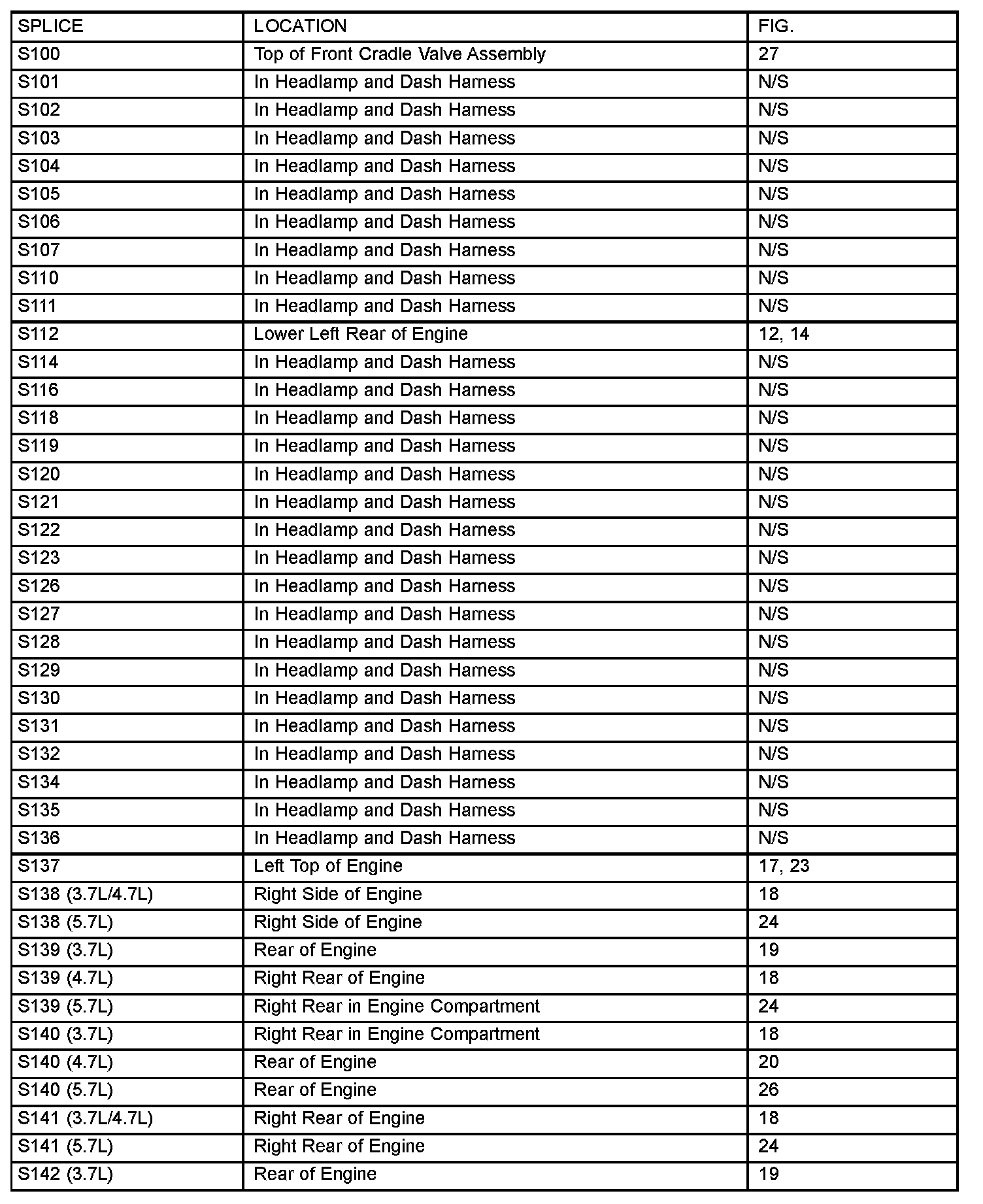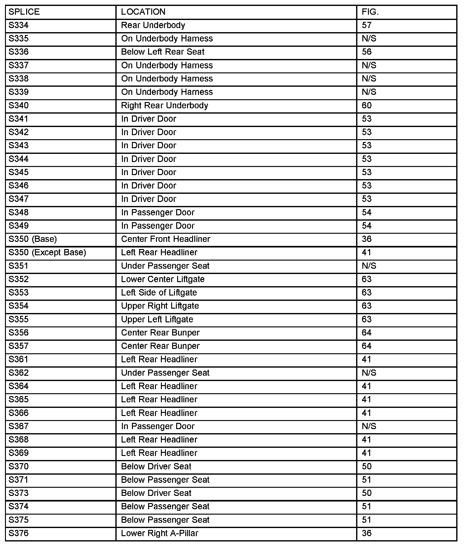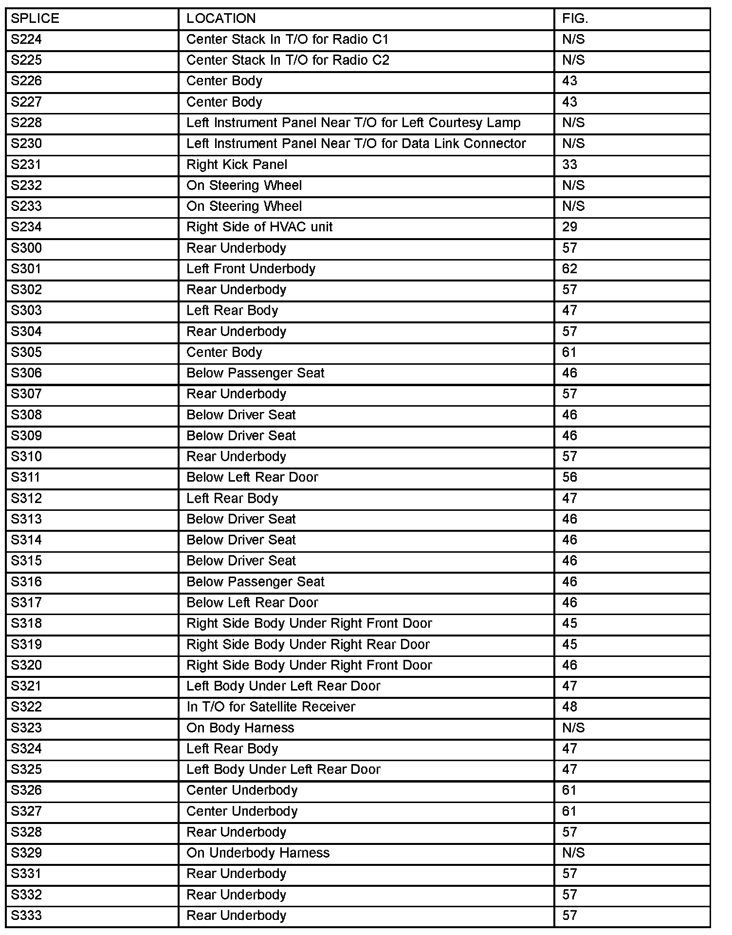 The abbreviation T/O (Take Out) is used in the location column to indicate a point in which the wiring harness branches out to a component.