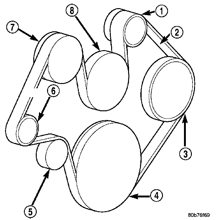 CAUTION: When installing the serpentine accessory drive belt, the belt MUST be routed correctly. If not, the engine may overheat due to the water pump rotating in the wrong direction.