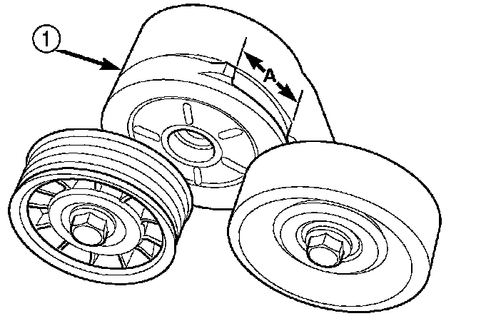 3. With the drive belt installed, inspect the belt wear indicator. On 3.7L Engines the gap between the tang and the housing stop ( measurement A ) must not exceed 24 mm (0.94 inches).