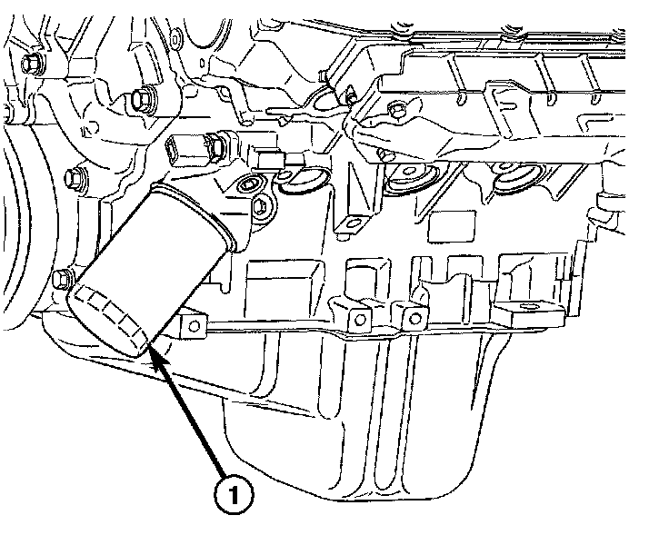 All engines are equipped with a high quality full-flow, disposable type oil filter (1). Daimler Chrysler Corporation recommends a Mopar or equivalent oil filter be used.