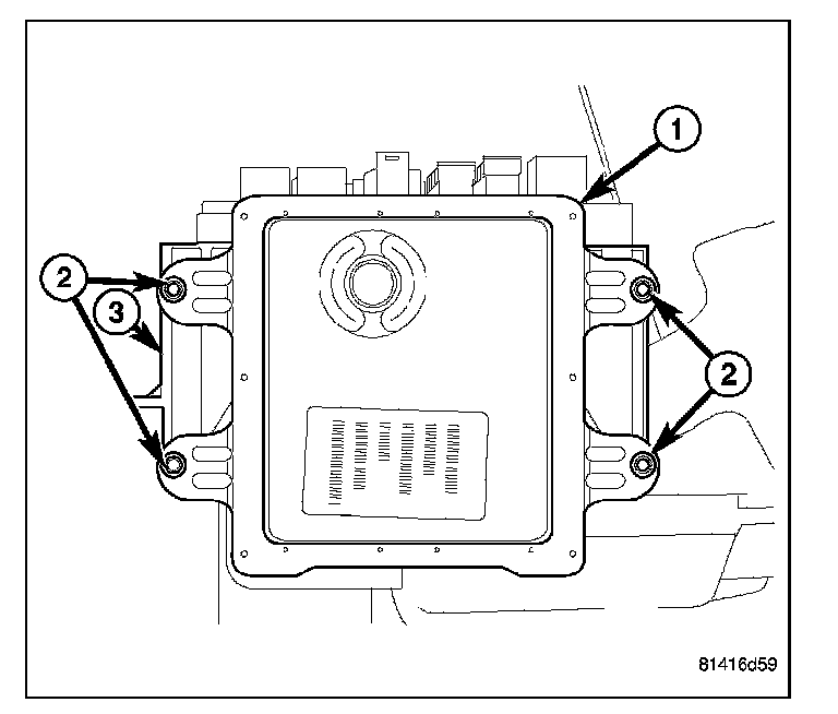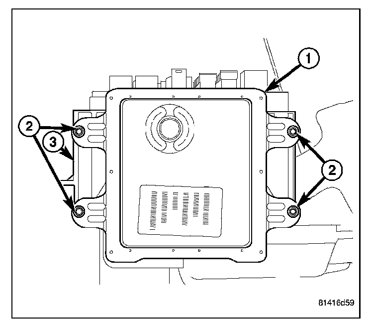 3. Remove the four fasteners (2) securing the Front Control Module (FCM) (1) to the IPM (3).