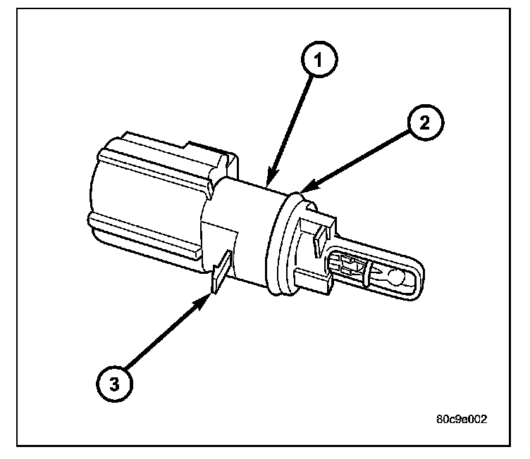 3. Gently lift on small plastic release tab (3) and rotate sensor about 1/4 turn counter-clockwise for removal.