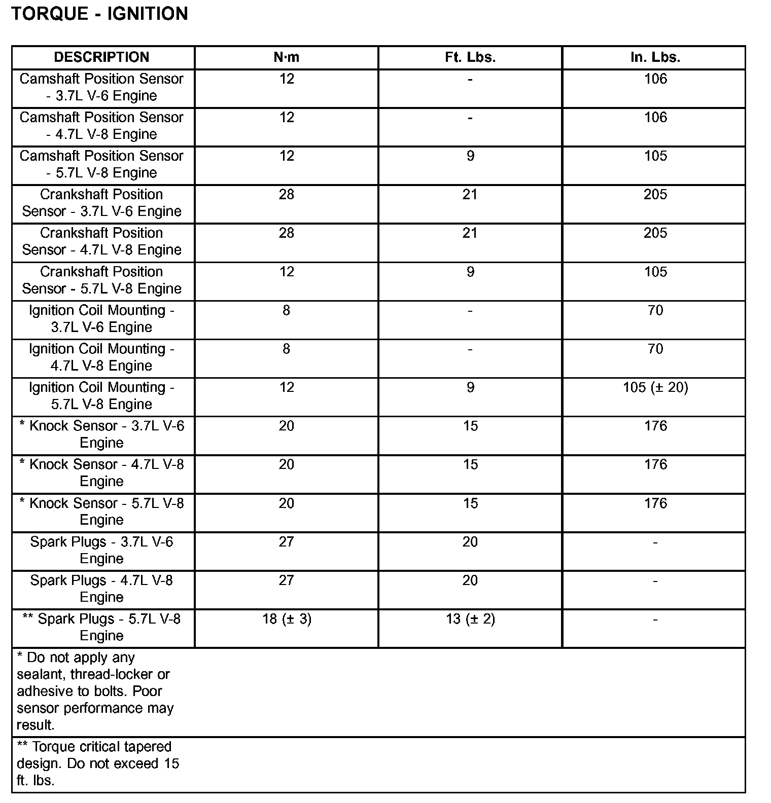 Ignition System: Specifications