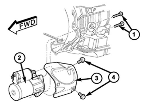 3. Position starter motor (4) to transmission.