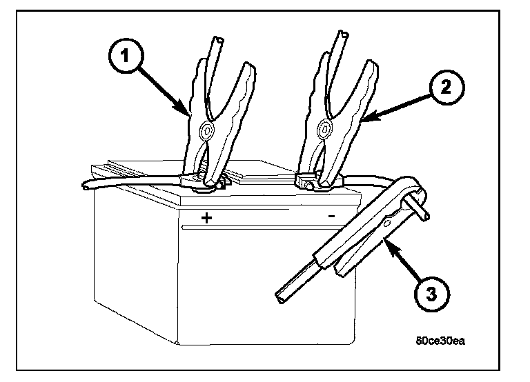 1. Connect volt-ampere tester to battery terminals (1), (2) and (3). See instructions provided by manufacturer of volt-ampere tester being used.