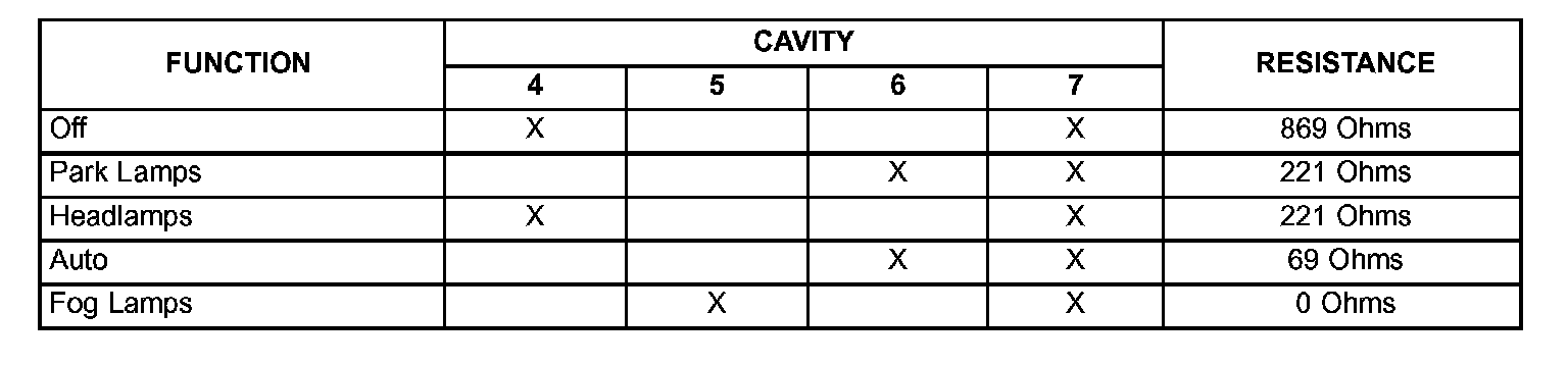 LEFT MULTI-FUNCTION (LIGHTING CONTROL) SWITCH RESISTANCE - EXTERIOR LAMPS