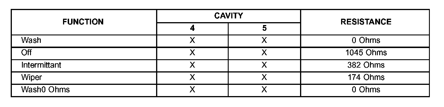 RIGHT MULTI-FUNCTION (WIPER/WASHER) SWITCH RESISTANCE - FRONT WIPER FUNCTIONS