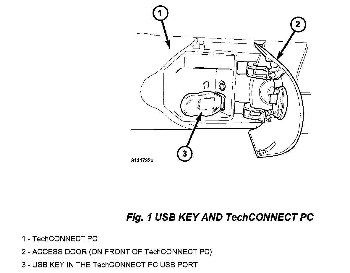 2. Insert the USB Key, into the USB port on the TechCONNECT or equivalent PC, (Fig. 1).