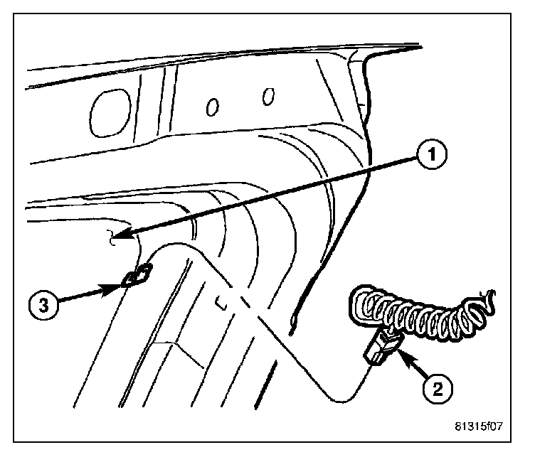 1. Disconnect heated liftgate glass electrical connector (2).