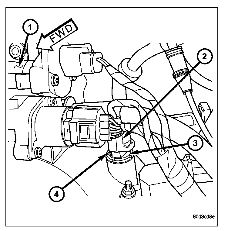 The intake manifold air temperature (IAT) sensor (3) is installed into the left side of intake manifold plenum.