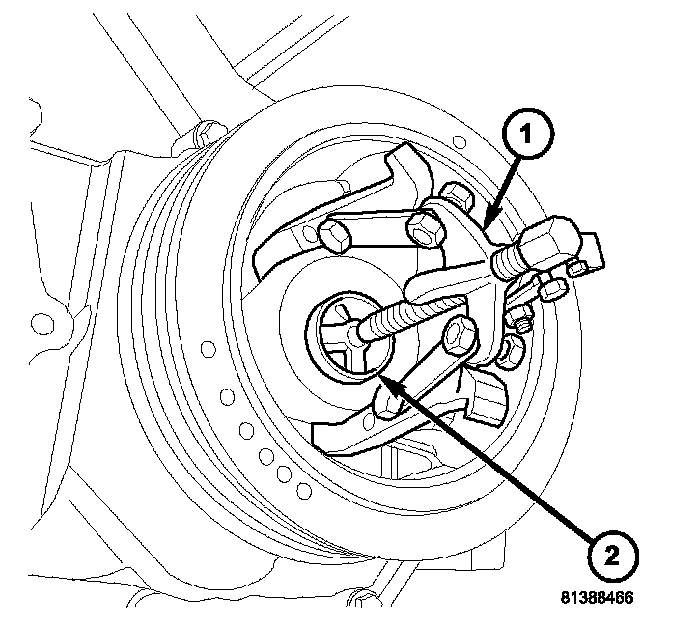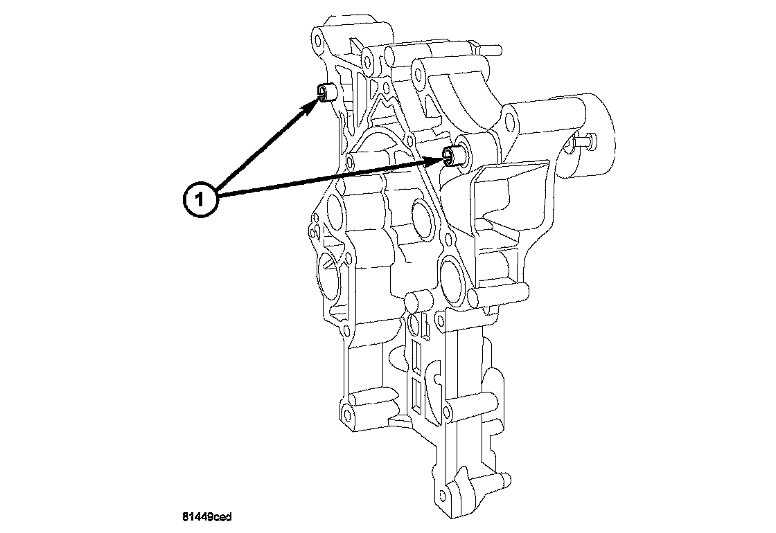 2. Verify that the slide bushings (1) are installed in timing cover.