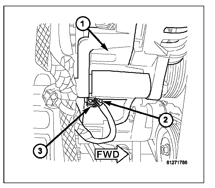 REMOVALThe Camshaft Position Sensor (CMP) on the 5.7L V-8 engine is located on right side of timing chain cover below generator (1).