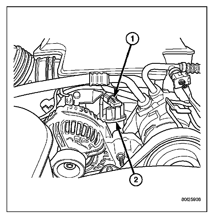 The Manifold Absolute Pressure (MAP) sensor (1) is mounted to the front of the intake manifold air plenum box.