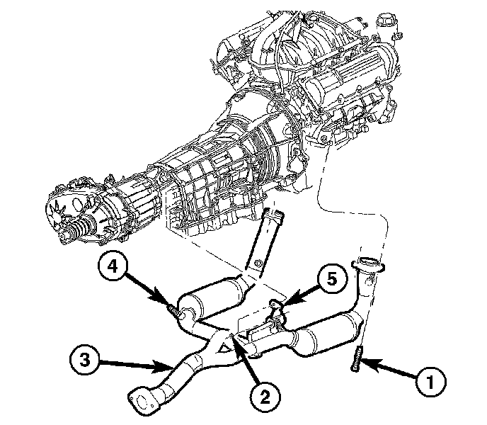 8. Remove the front exhaust pipe/catalytic converter assembly (3) from the vehicle.