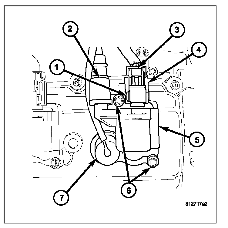 5. Remove two mounting bolts (6) (note that mounting bolts are retained to coil).