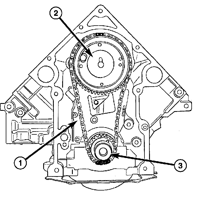 The timing chain must be installed with the single plated link aligned with the dot and or paint marking on the camshaft sprocket. The crankshaft sprocket is aligned with the dot and or paint marking on the sprocket between two plated timing chain links.