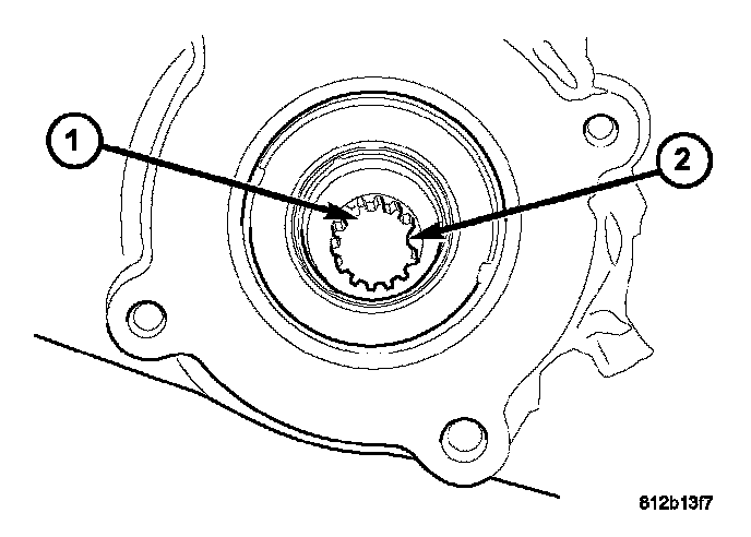 NOTE: Hand the transfer case drive spline (1) missing tooth (2) are aligned. It may be necessary to manually shift the transfer case if the shift motor and transfer case shaft are not aligned.