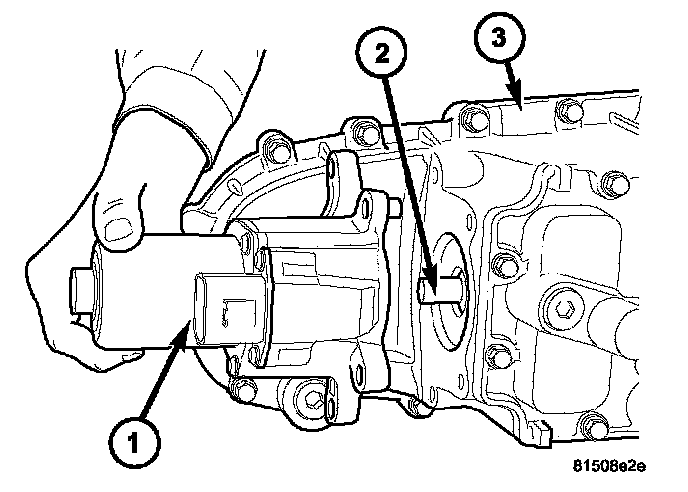 4. Separate the shift motor and mode sensor assembly (1) from the transfer case (3) and shift sector (2).