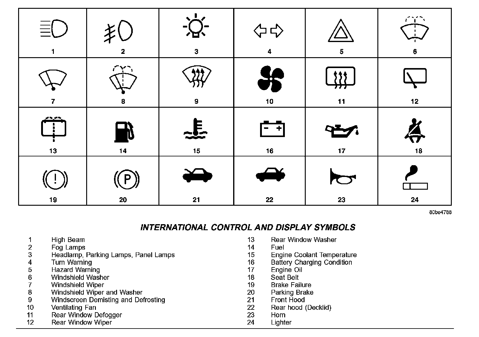 The graphic symbols illustrated in and the following International Control and Display Symbols Chart are used to identify various instrument controls. The symbols correspond to the controls and displays that are located on the instrument panel.