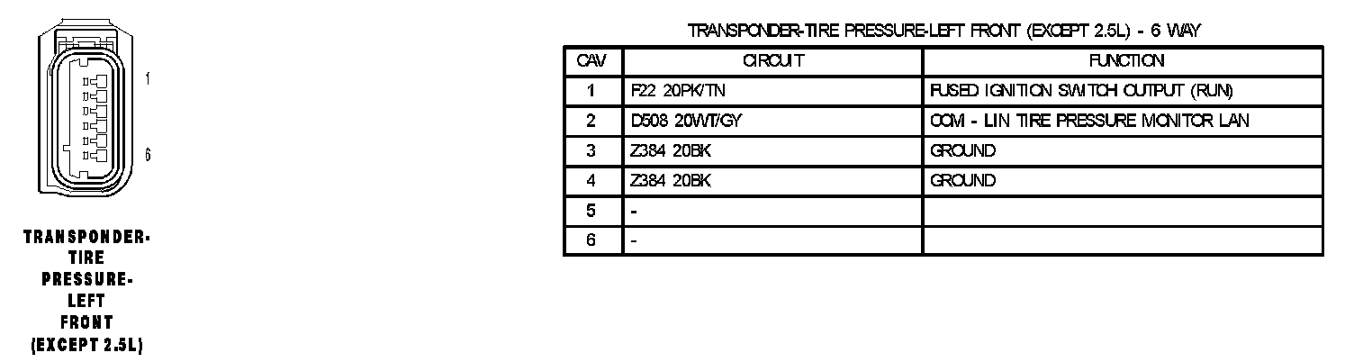 Transponder-Tire Pressure-Left Front (Except 2.5L):