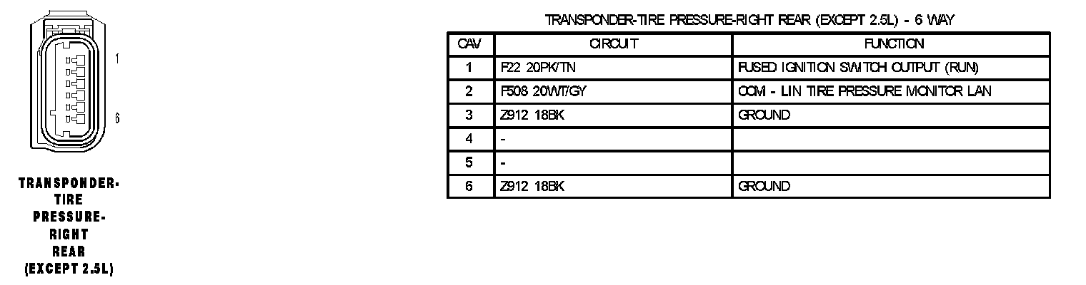 Transponder-Tire Pressure-Right Rear (Except 2.5L):