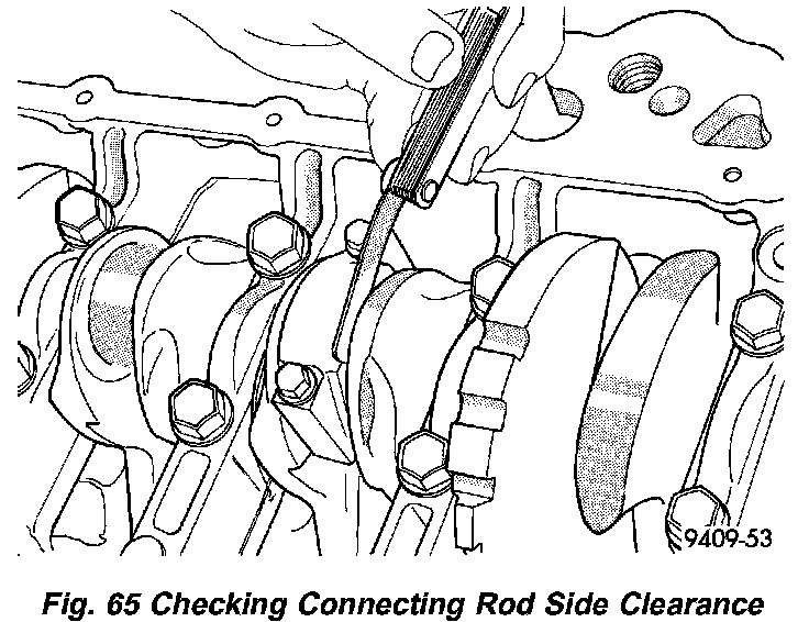 10. Using a feeler gauge, check connecting rod side clearance (Fig. 65).