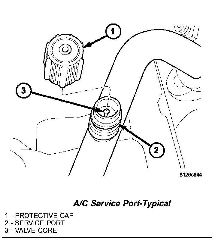 NOTE: The protective cap helps aid in service port sealing and helps protects the refrigerant system from contamination. Remember to always reinstall the protective cap onto the service port when refrigerant system service is complete.
