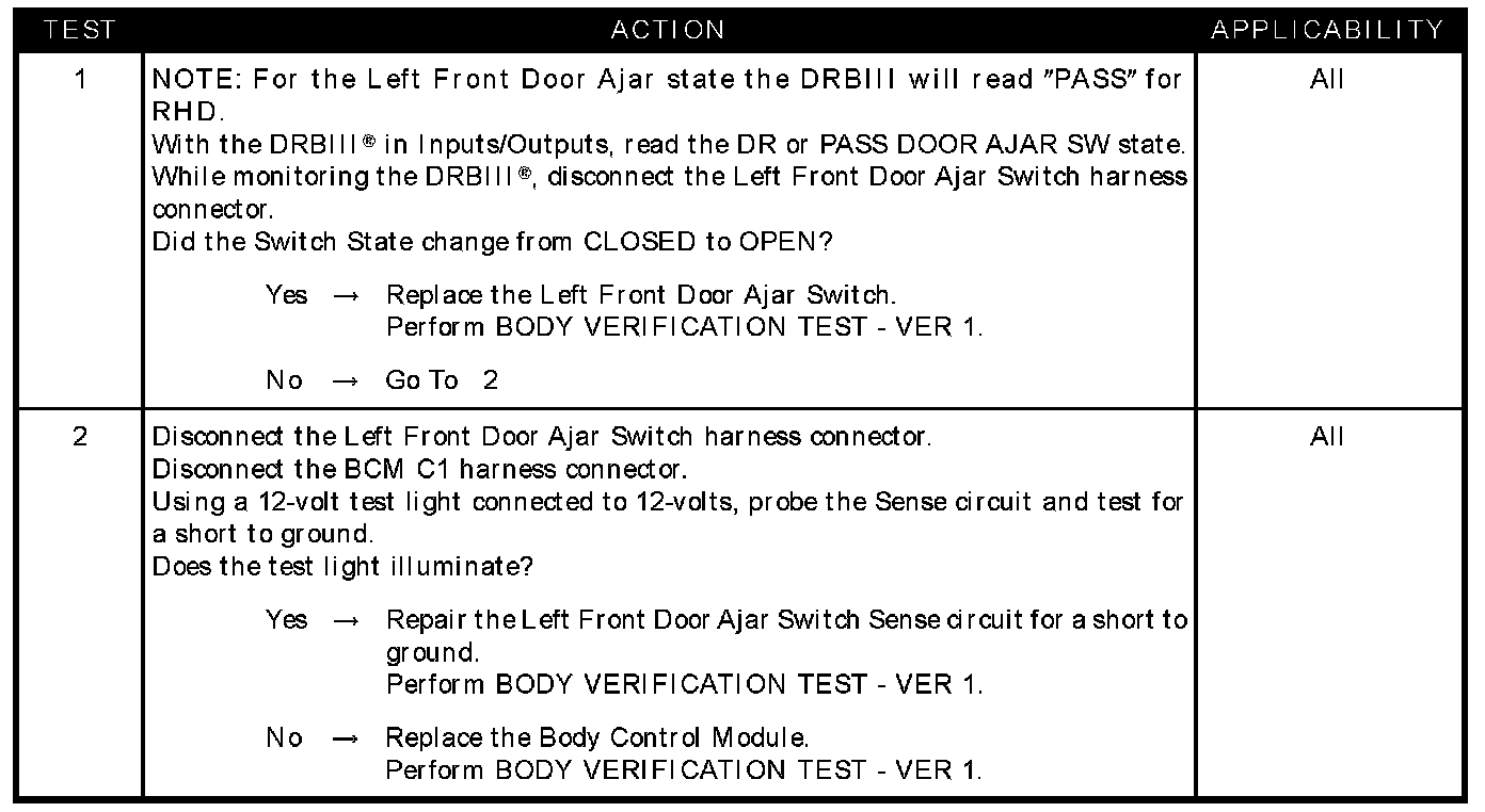 LEFT FRONT DOOR AJAR CIRCUIT SHORTED TO GROUND