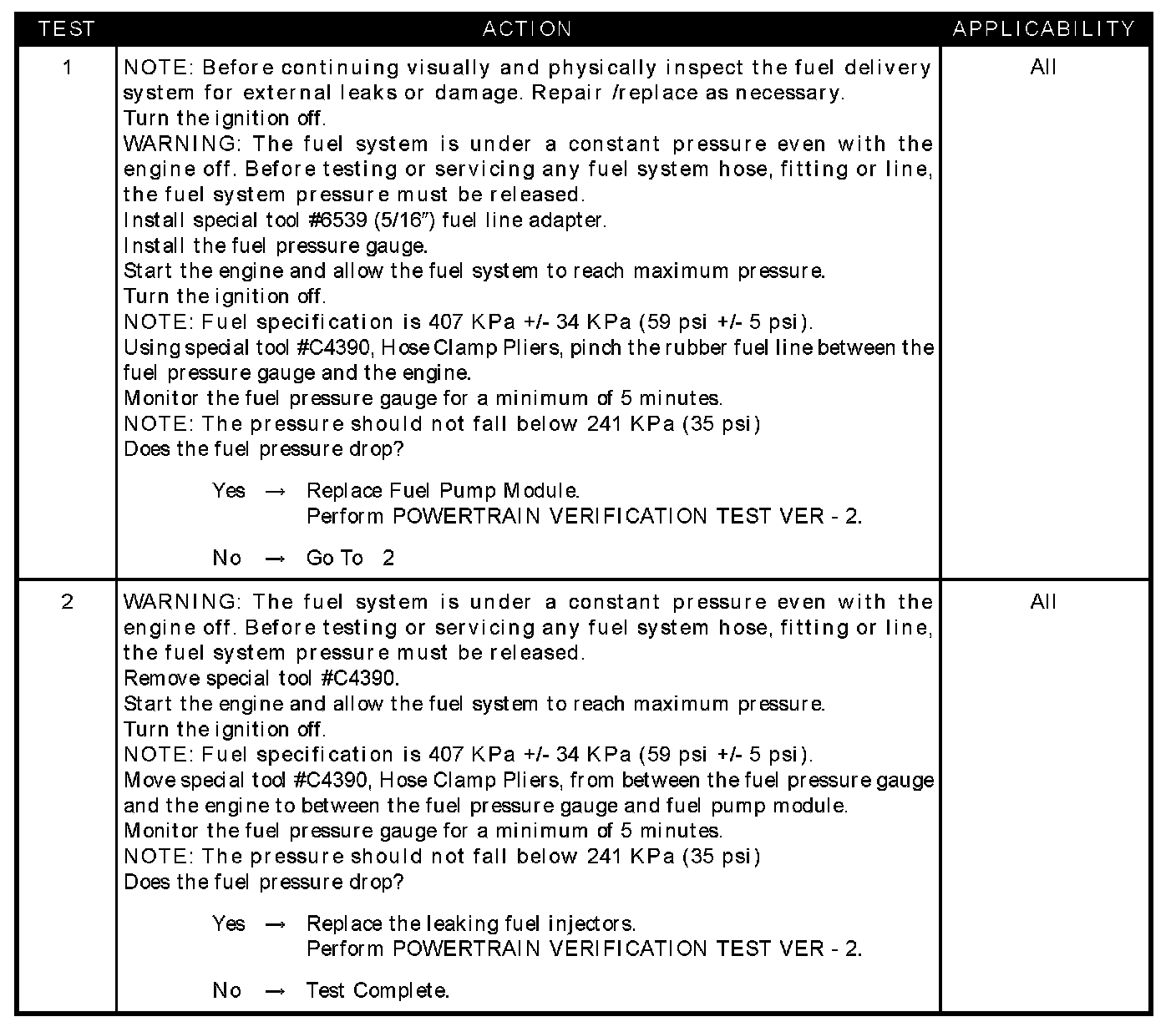 Fuel Pressure Leak Down
