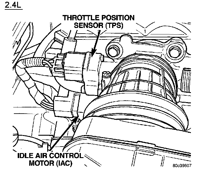 The Throttle Position Sensor (TPS) is mounted to the throttle body.