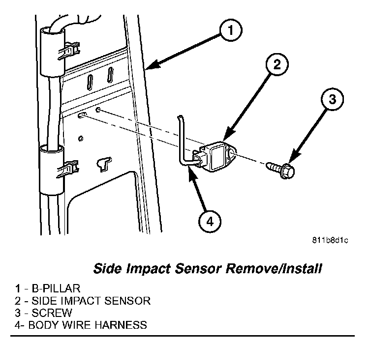 4. Remove the screw that secures the right or left side impact sensor to the lower B-pillar.