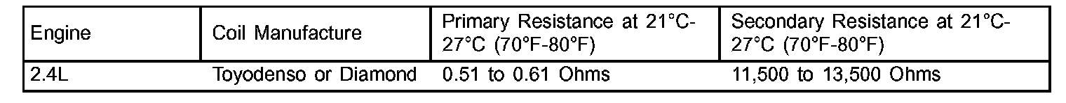 Ignition Coil Resistance - 2.4L: