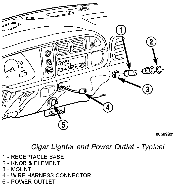 8. Remove the cigar lighter or power outlet mount from the instrument panel.