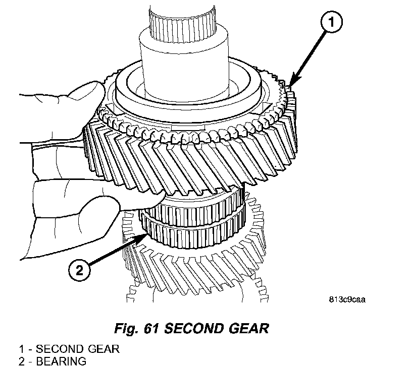 3. Install second gear (1) (Fig. 61) on bearing (2).