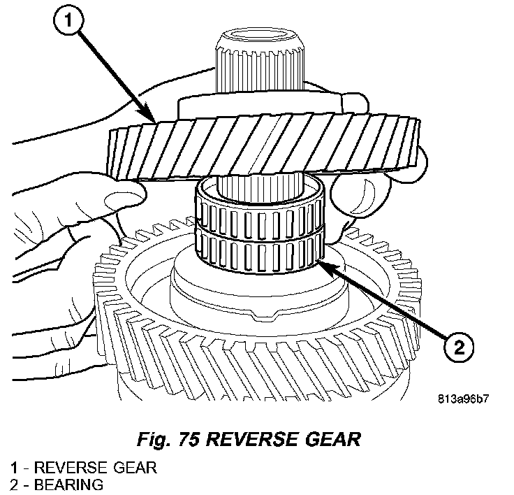 17. Install reverse gear (1) (Fig. 75) and bearing (2).