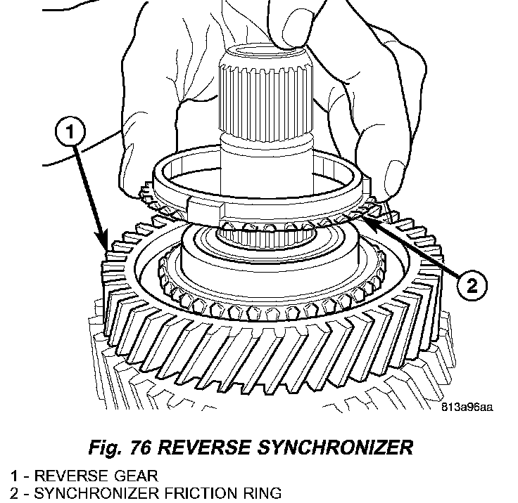 18. Install reverse gear (1) (Fig. 76) synchronizer friction ring (2).