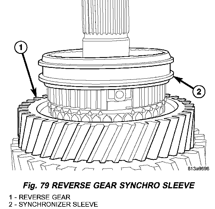 21. Install reverse gear (1) (Fig. 79) synchronizer sleeve (2) and center sleeve on synchronizer hub.