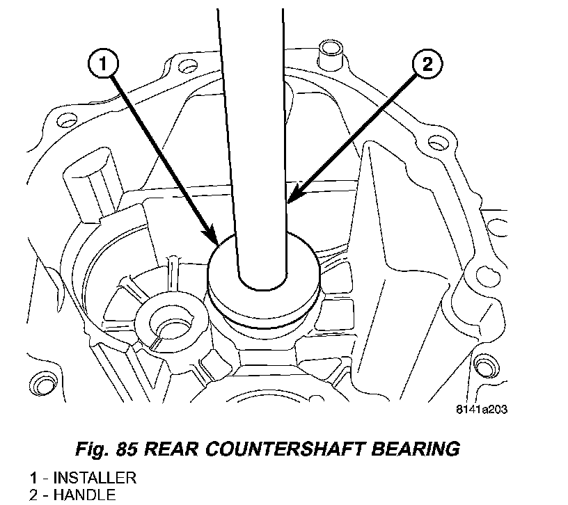 1. Install countershaft bearing (Fig. 85) into rear housing with Installer 9643 (1) and Handle C-4171.