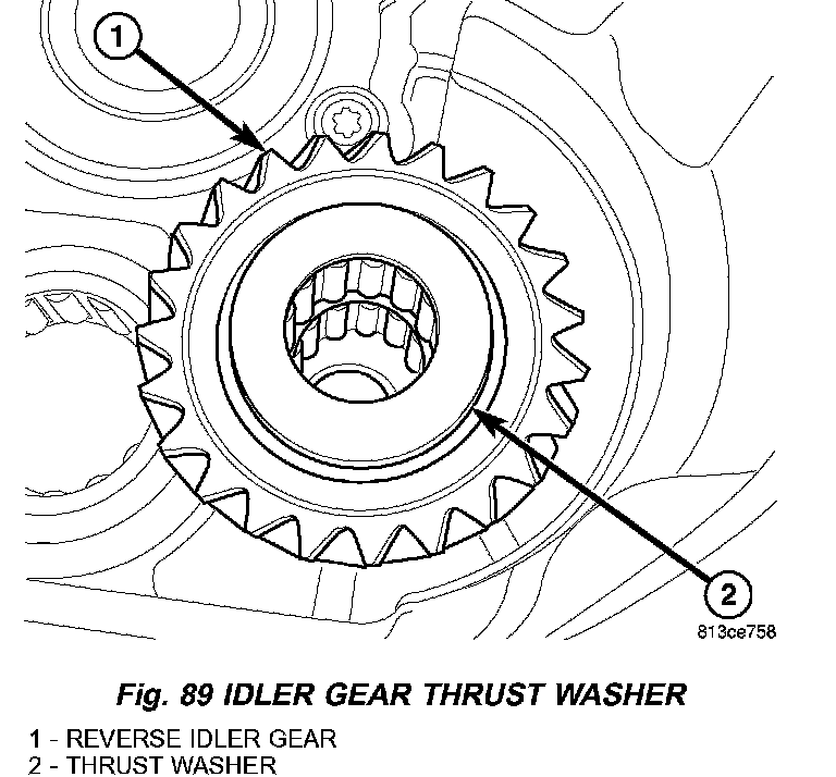 6. Install idler gear (1) (Fig. 89) thrust washer (2) on idler gear.