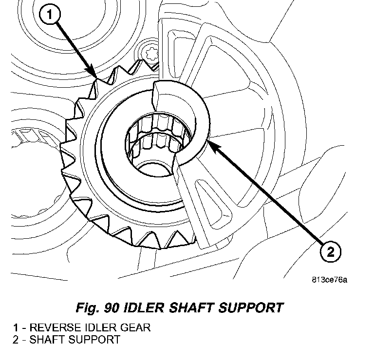 7. Install idler gear (1) (Fig. 90) shaft support (2) into housing.