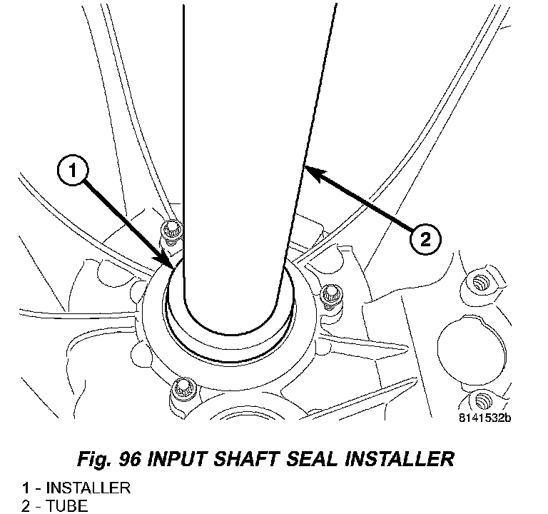 1. Install input shaft seal (Fig. 96) with Installer 9635 (1) tube 6448A (2).