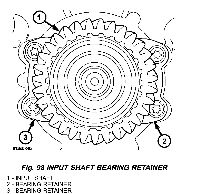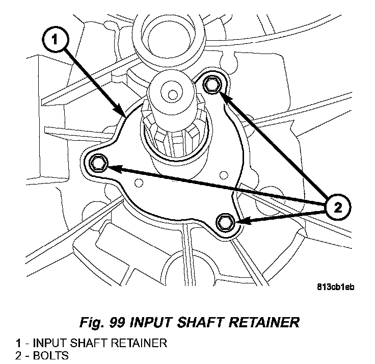 4. Install input shaft retainer (1) (Fig. 99) and tighten bolts (2) to 9 Nm (80 inch lbs.).