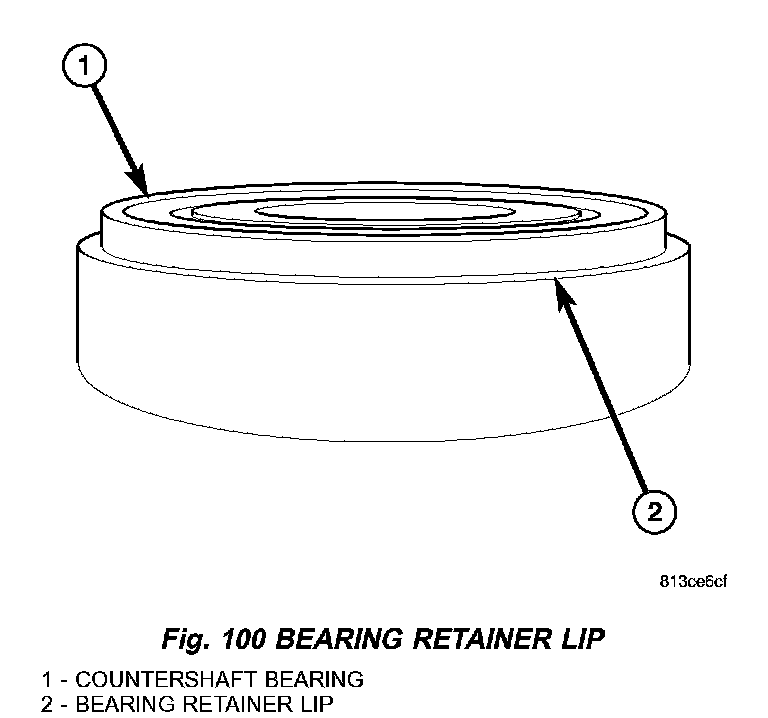 5. Install countershaft bearing (1) (Fig. 100) into housing with bearing retainer lip (2) facing up.