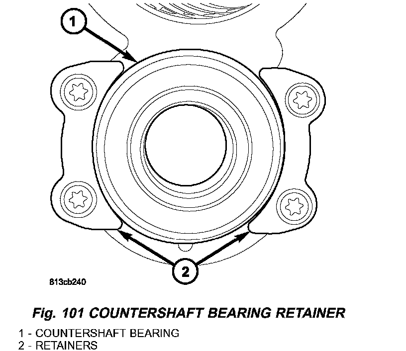 6. Install countershaft bearing (1) (Fig. 101) retainers (2) and tighten bolts to 10 Nm (88 inch lbs.).