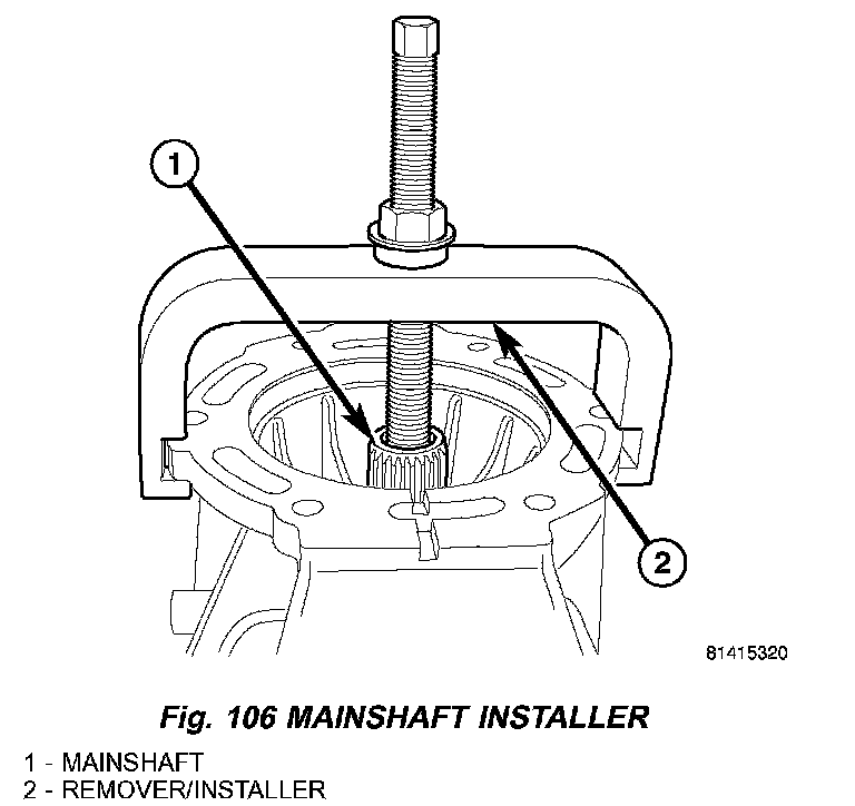 5. Install rear housing on mainshaft (1) (Fig. 106) with Installer 9636 (2).