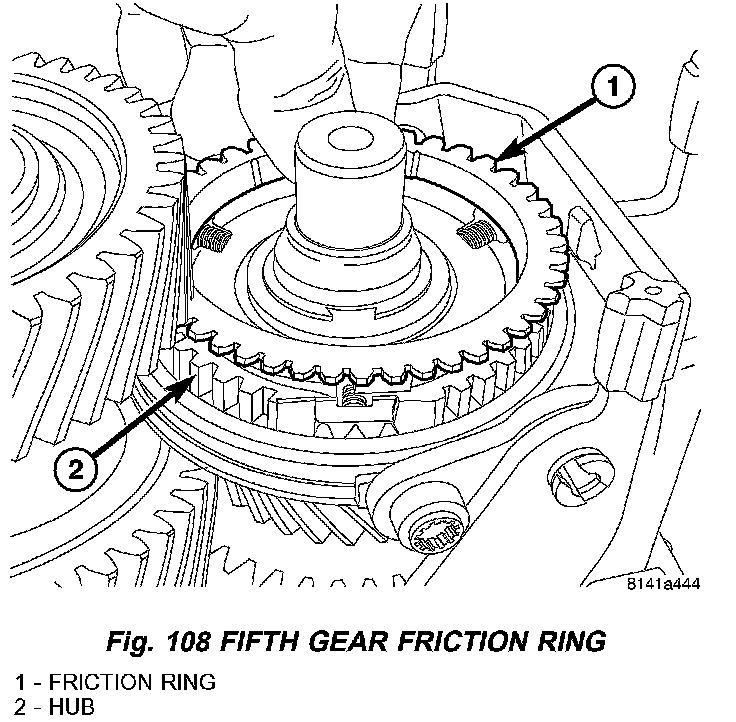 8. Install fifth gear synchronizer friction ring (1) (Fig. 108) on 5-6 synchronizer hub (2).
