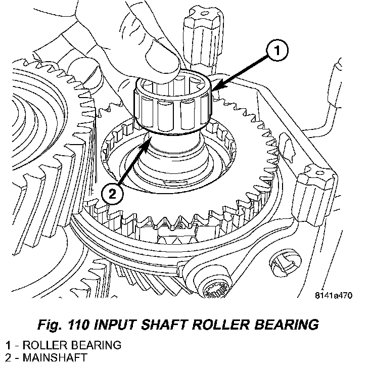 10. Install input shaft (Fig. 110) roller bearing (1) on mainshaft (2)..