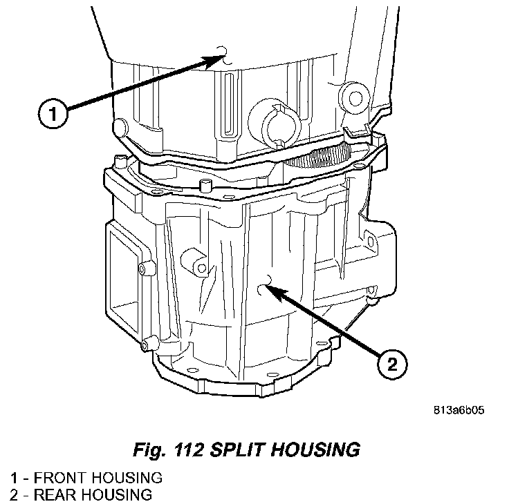 13. Install front housing (1) (Fig. 112) on rear housing (2) and tighten bolts to 28 Nm (21 ft. lbs.).