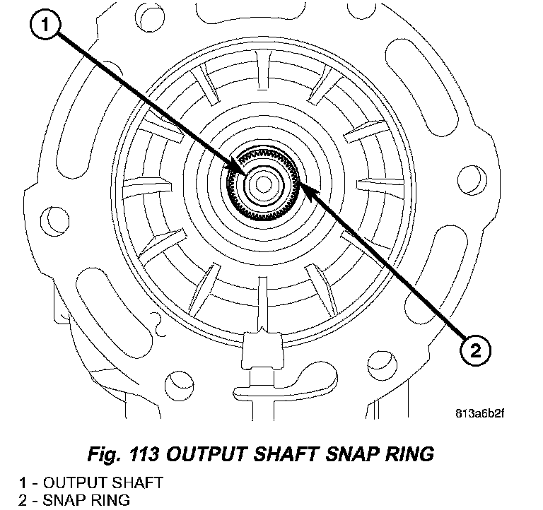 14. Install output shaft (1) (Fig. 113) snap-ring (2) 4x4 only.