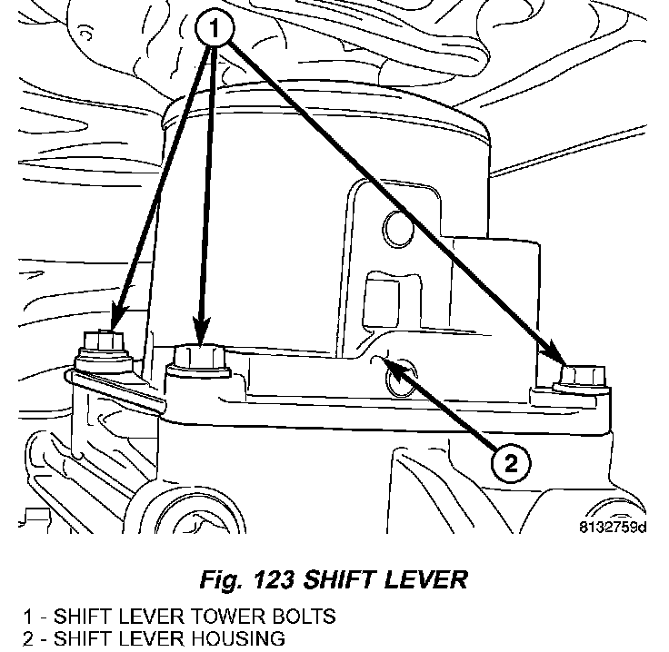 6. Install shift tower (2) (Fig. 123) and tighten bolts (1) to 10 Nm (7 ft. lbs.).
